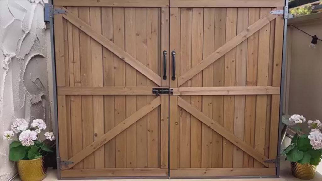 - 【Spacious Outdoor shed】The Outdoor storage shed measures 29"D x 55"W x 67"H This outdoor storage shed is perfect for your outdoor storage needs.It can store your shovels, bicycles, and toy cars. You can also buy some storage racks to hang on your outdoor storage shed to organize your shovels, umbrellas, antennas, and more.